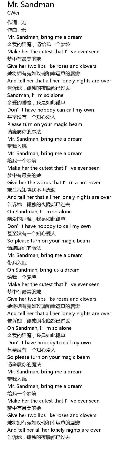| Mr. Sandman, bring me a dream | |
