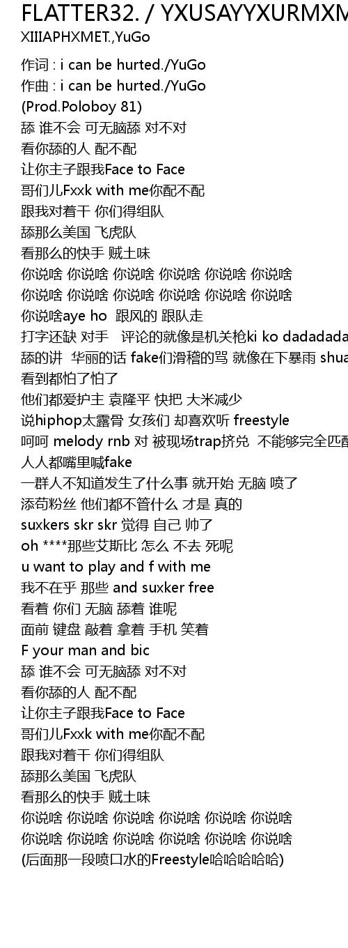 | 舔的讲 华丽的话 fake们滑稽的骂 就像在下暴雨 shua 看到都怕了怕了 | |