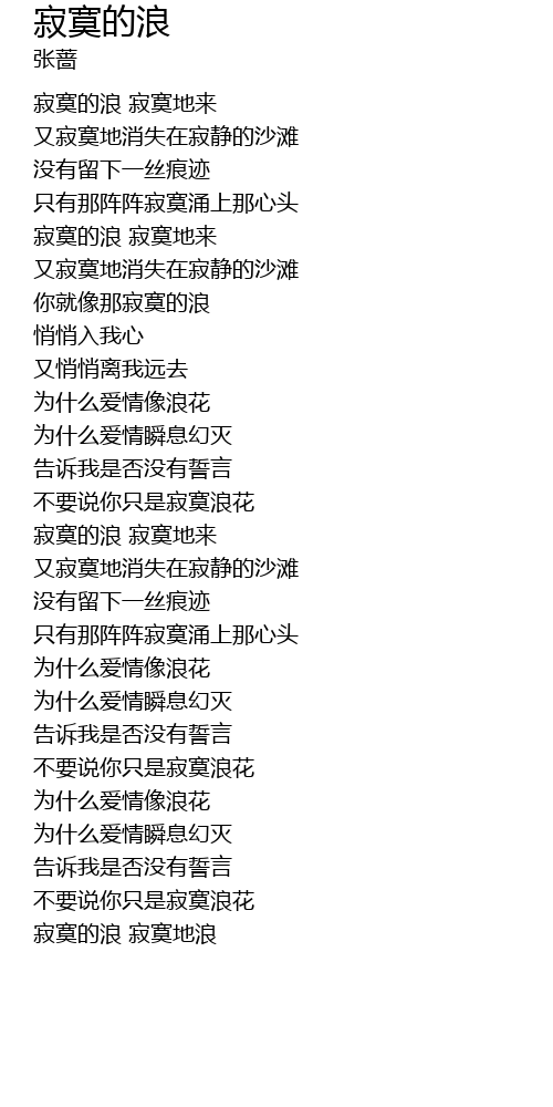 | [03:26.960] | 寂寞的浪 寂寞地浪 |