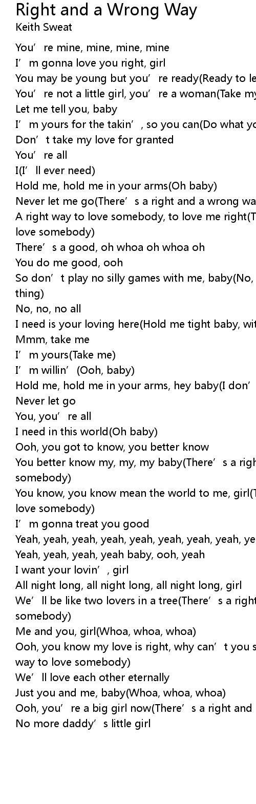 | Ooh, you know my love is right, why can' t you see There' s a good and a bad way to love somebody | |