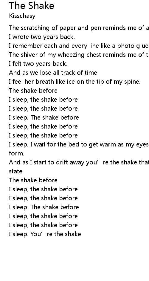 | And as I start to drift away you' re the shake that pulls me back to this state. | |