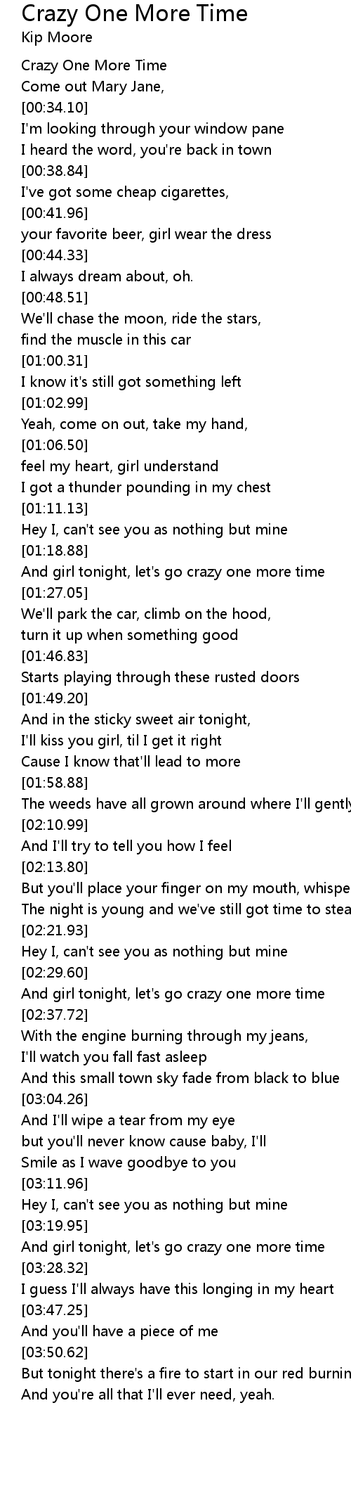 And girl tonight, let's go crazy one more time |