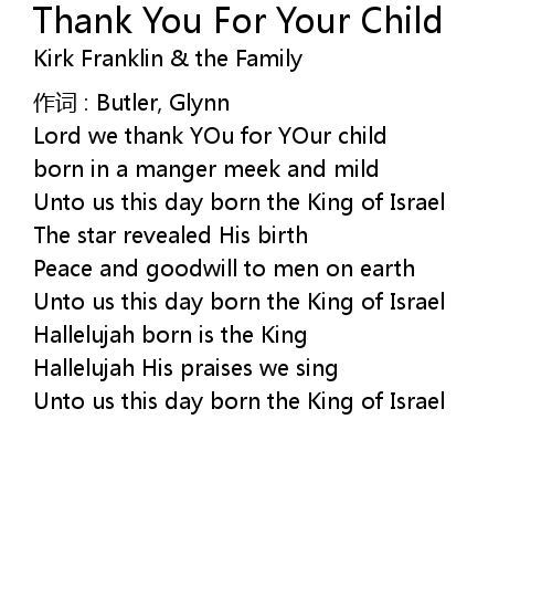 | Song | Thank You For Your Child |