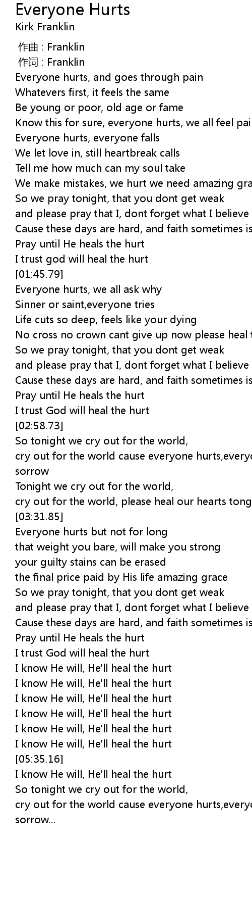 | [00:01.24] | Everyone hurts, and goes through pain |