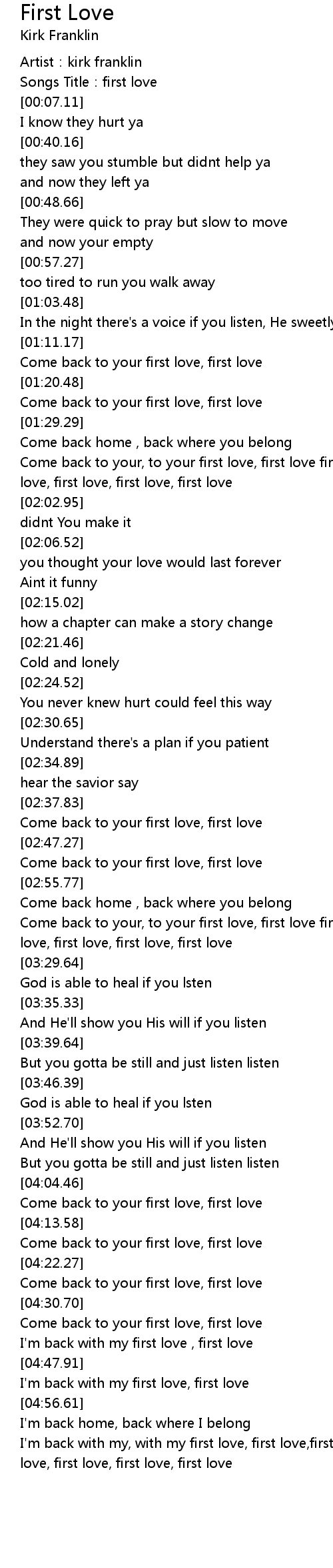 | [01:39.87] | Come back to your, to your first love, first love first love, first love, first love, first love, first love |