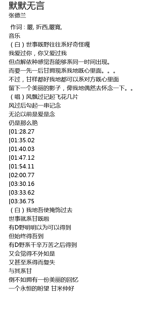 | [03:23.82][02:00.77] | 重提起你默默无言 |