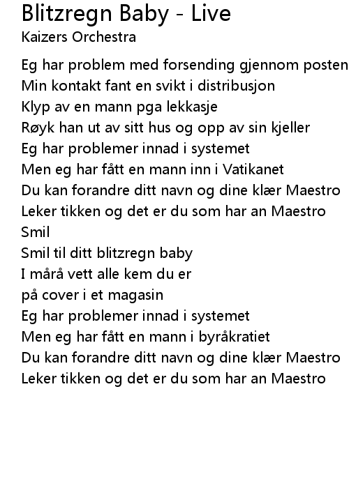 | Song | Blitzregn Baby - Live |