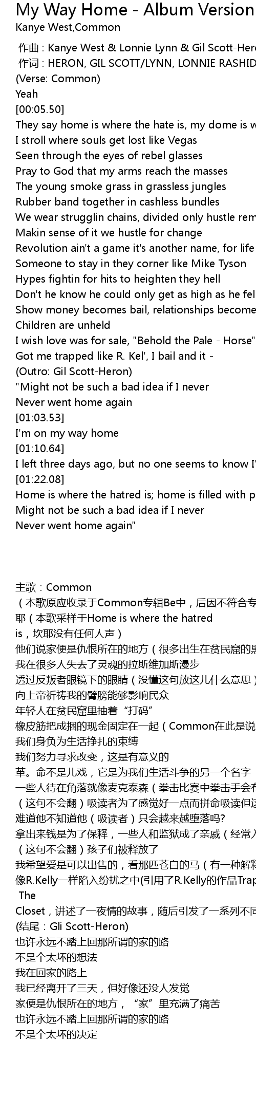 | [00:01.00] | 作词 : HERON, GIL SCOTT/LYNN, LONNIE RASHID/WEST, KANYE OMARI |