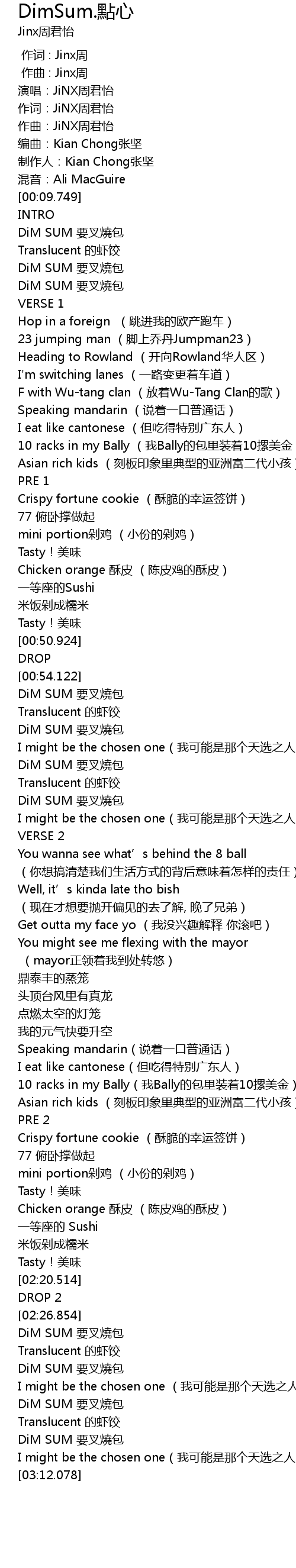 | [02:53.002] | DiM SUM 要叉燒包 |