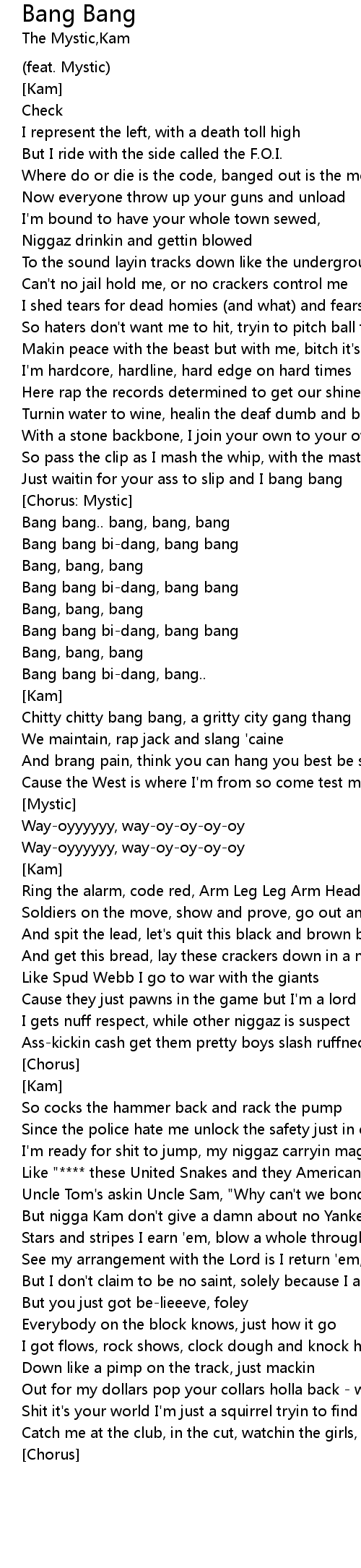 | Just waitin for your ass to slip and I bang bang | |
