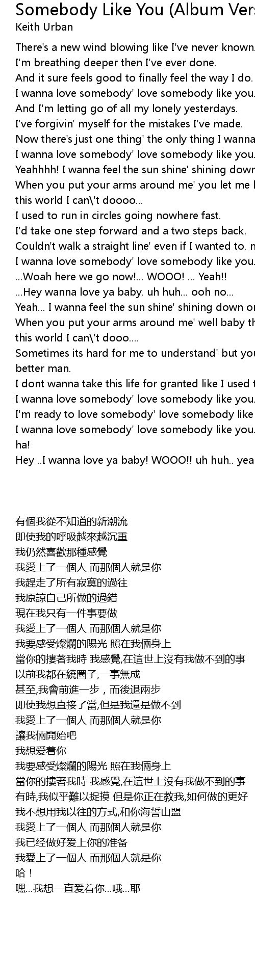I wanna love somebody' love somebody like you... yeah. |
