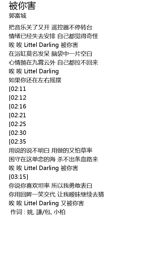 | [03:24] | 唉 唉 Littel Darling 又被你害 |