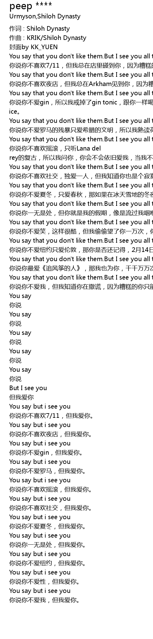 | You say that you don' t like them. But I see you all the time I peep | |