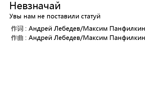 | [00:00.000] | 作词 : Андрей Лебедев/Максим Панфилкин |