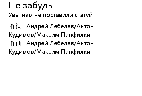 | [00:00.000] | 作词 : Андрей Лебедев/Антон Кудимов/Максим Панфилкин |