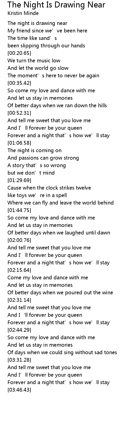| [01:01.58] | Forever and a night that’s how we’ll stay |