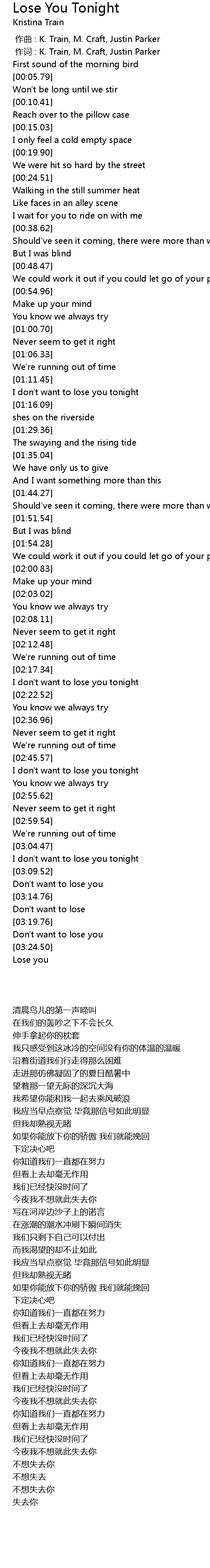 | [00:00.353] | 作词 : K. Train, M. Craft, Justin Parker |