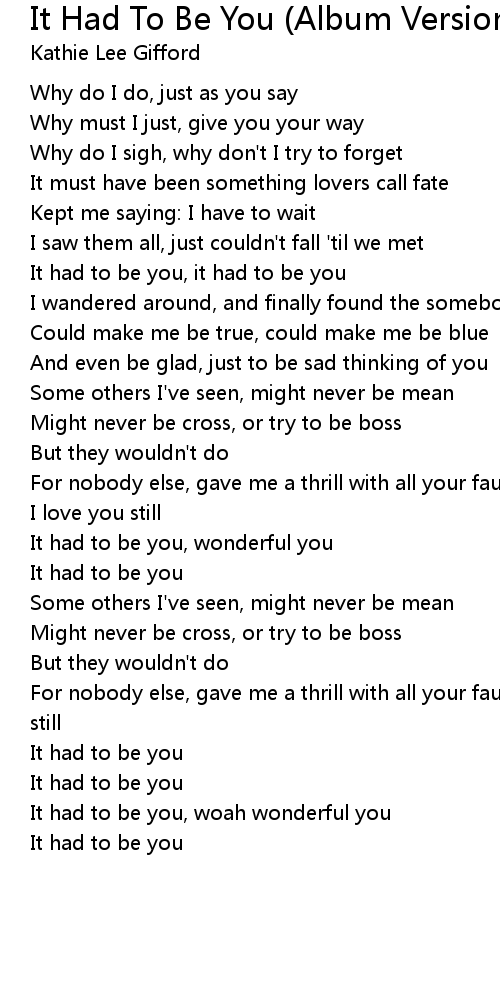 It had to be you, it had to be you |