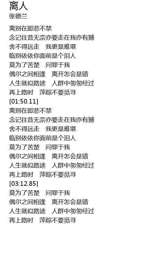 | [01:39.93] | 再上路时 萍踪不要觅寻 |