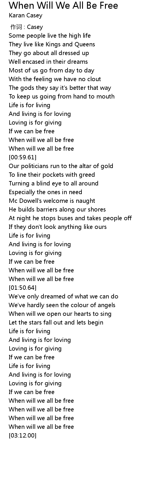 | [00:52.67] | When will we all be free |