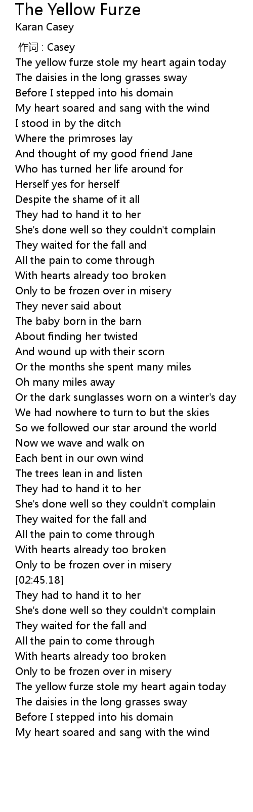 | [00:24.70] | The yellow furze stole my heart again today |