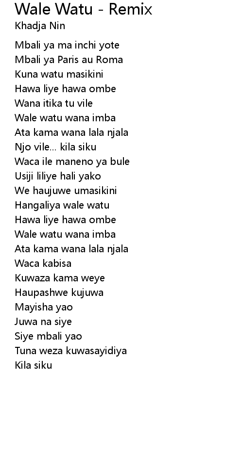 | Wale watu wana imba | |