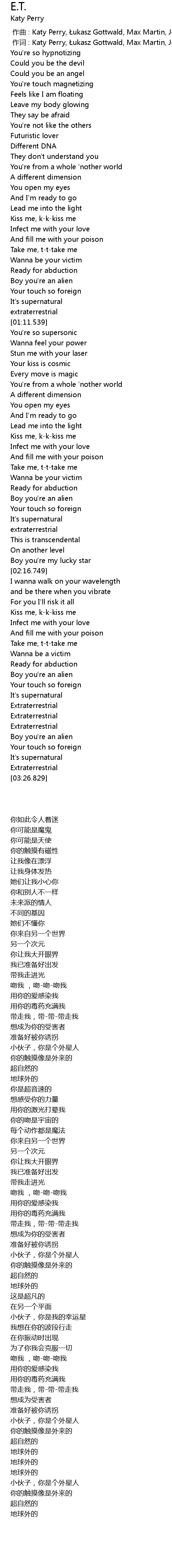 | [00:01.00] | zuò cí : Katy Perry, ukasz Gottwald, Max Martin, Joshua Coleman |