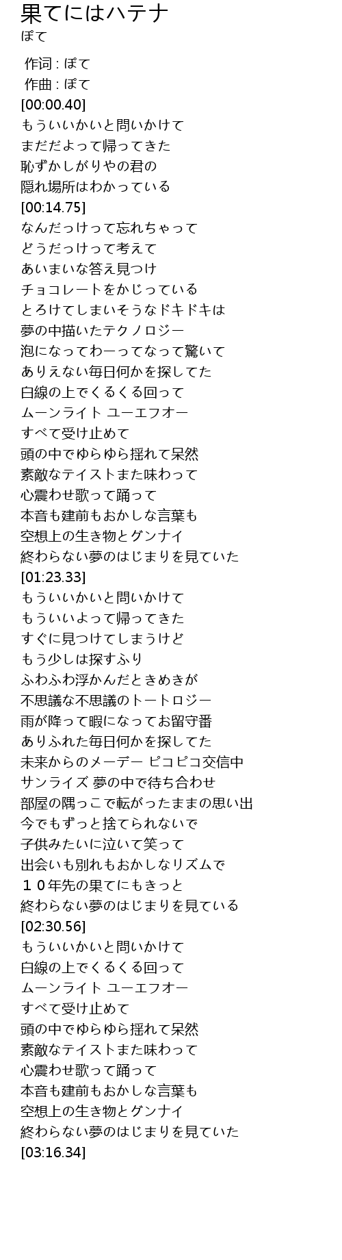 | Song | 果てにはハテナ |