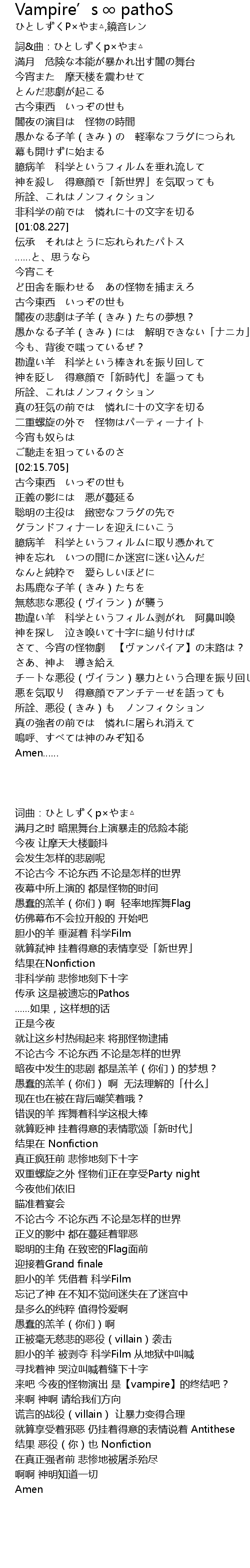 | Song | Vampire’s ∞ pathoS |