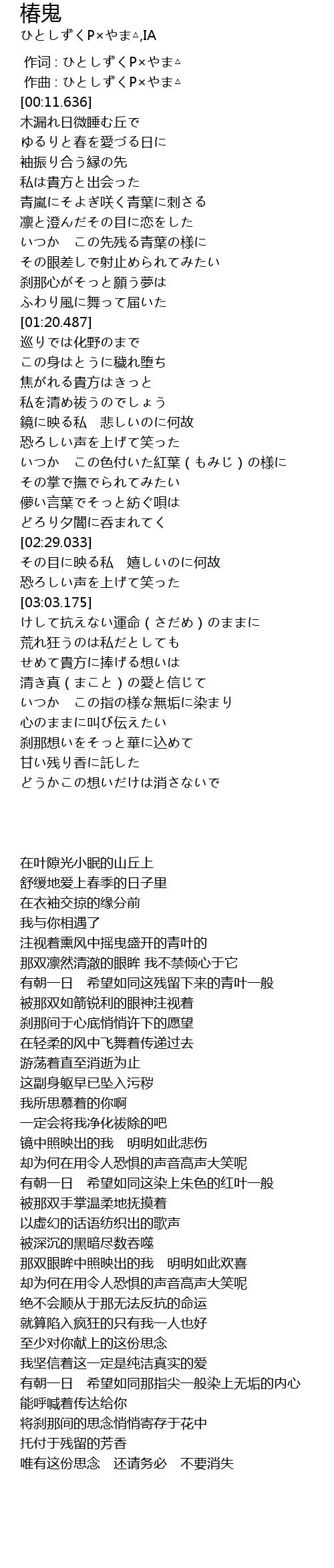 | [00:01.000] | 作曲 : ひとしずくP×やま△ |