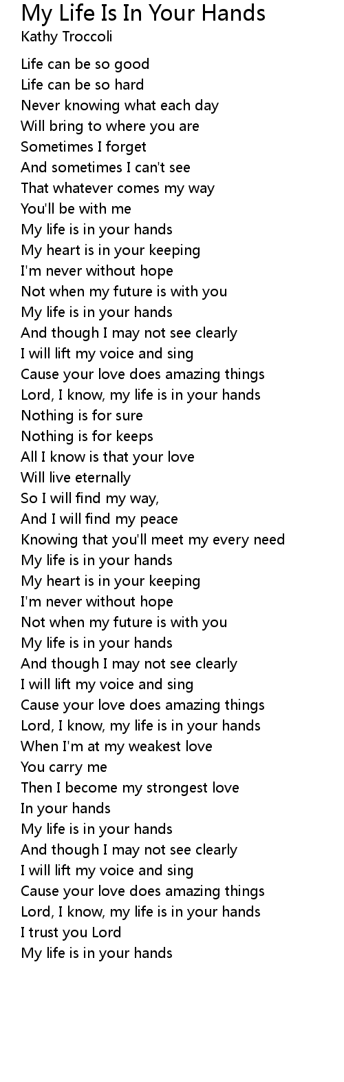 Lord, I know, my life is in your hands |