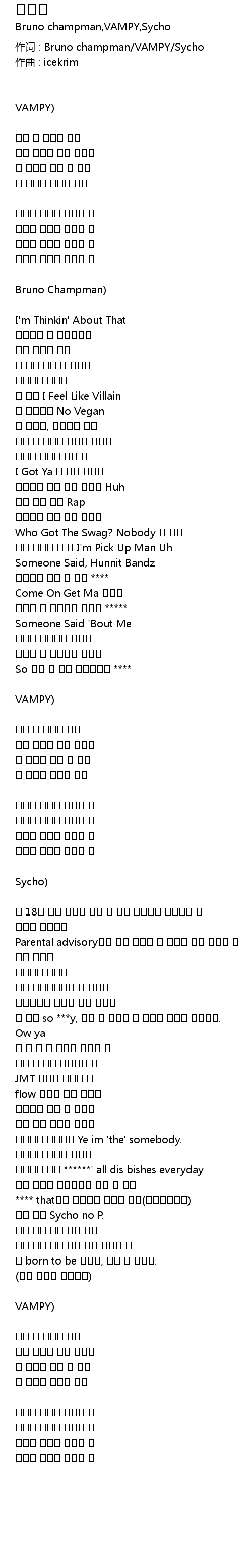 作词 : Bruno champman/VAMPY/Sycho |
