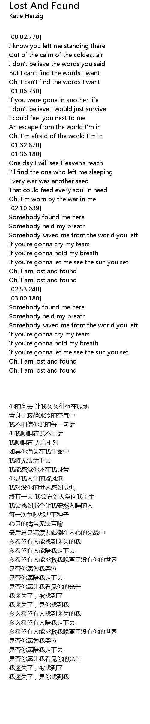 | [02:45.800] | Oh, I am lost and found |