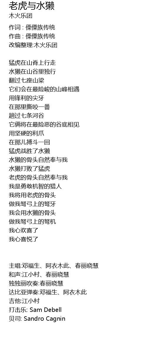 | 作词 : 傈僳族传统 | |