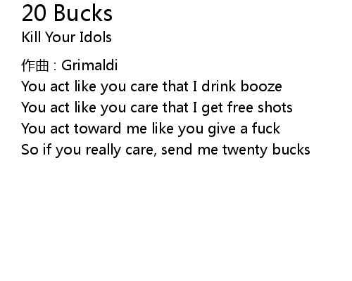 | Song | 20 Bucks |