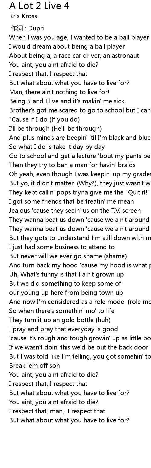 | [00:54.44] | They wanna beat us down ' cause we ain' t around no more |