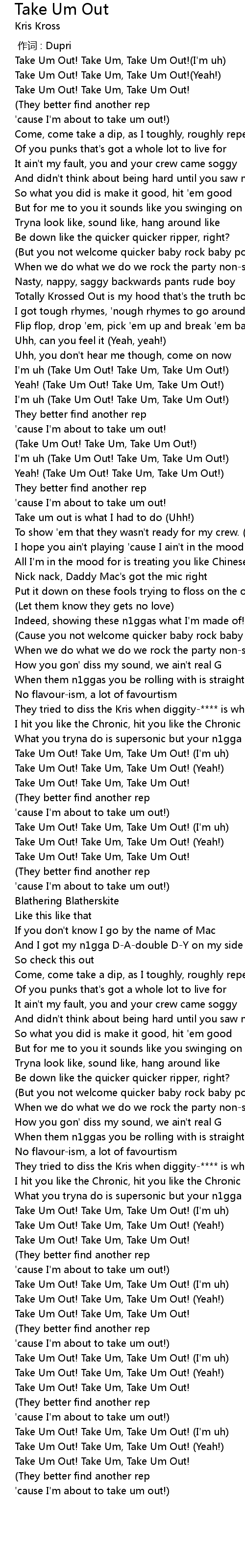 | [01:03.84] | Yeah! Take Um Out! Take Um, Take Um Out! |