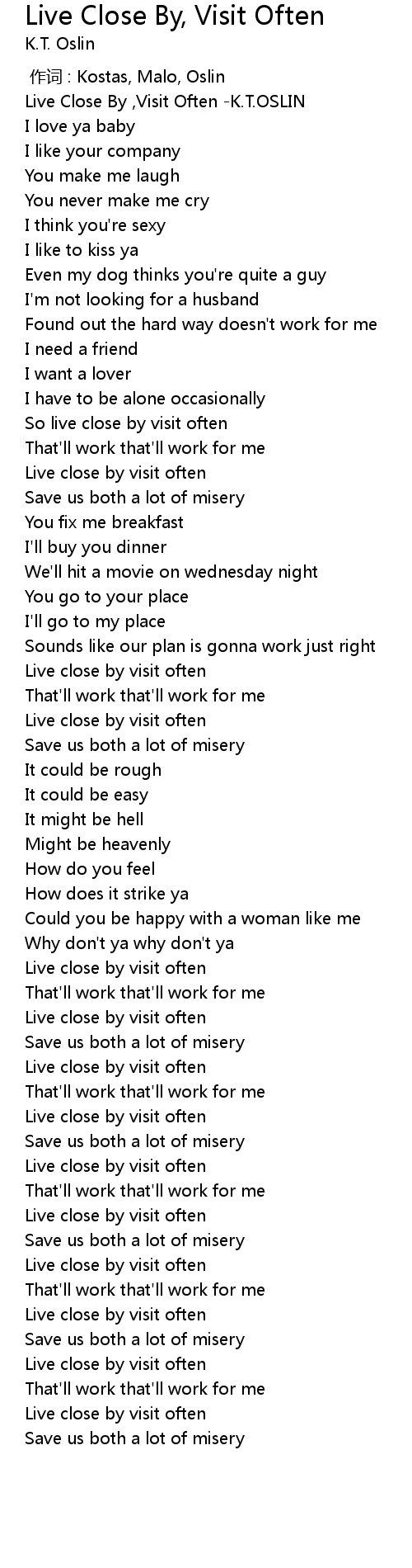 | [00:00.00] | Live Close By , Visit Often K. T. OSLIN |