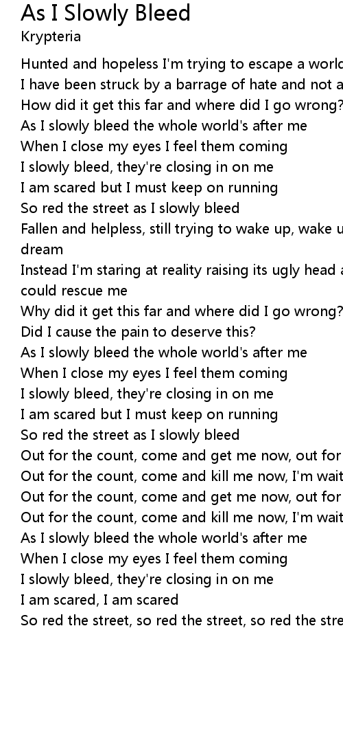 So red the street, so red the street, so red the street as I slowly bleed |