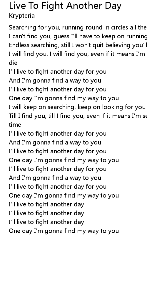 I'll live to fight another day for you |