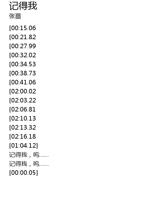 | [02:20.33][02:00.02][00:42.33] | 记得我,呜…… |