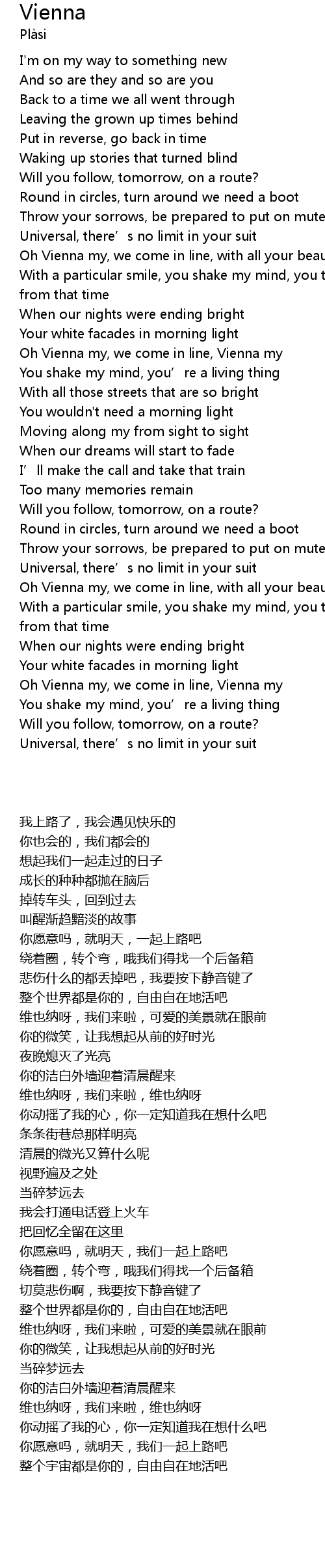 | [03:11.500] | Oh Vienna my, we come in line, Vienna my |