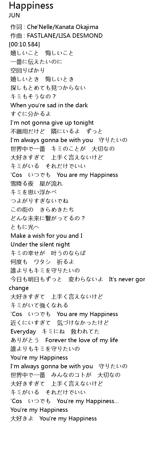 | [03:03.468] | 'Cos いつでも You are my Happiness |