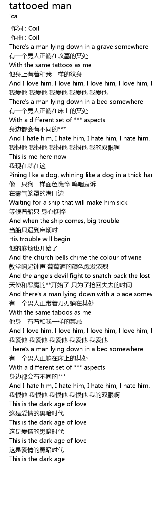 | [00:00.000] | 作词 : Coil |