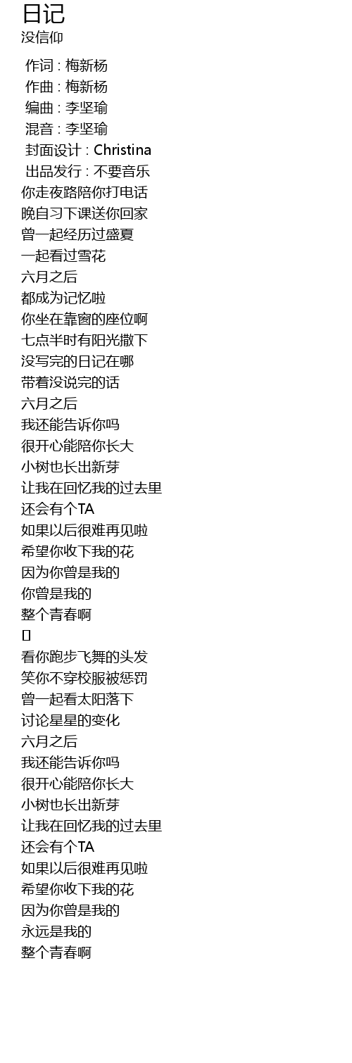 | [00:05.000] | 出品发行 : 不要音乐 |