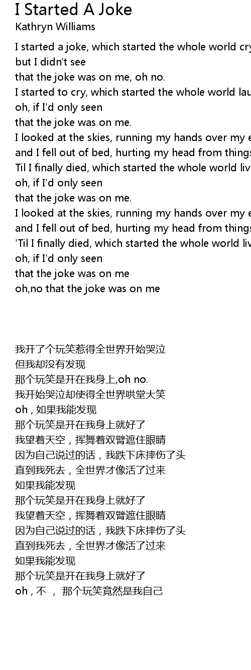 I started a joke, which started the whole world crying, |