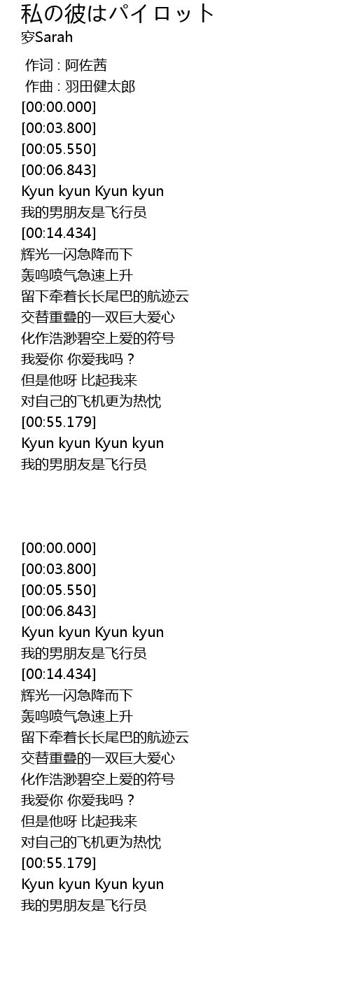 | [00:58.928] | 我的男朋友是飞行员 |