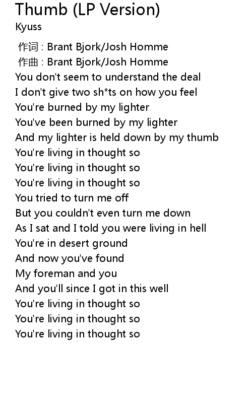 | [00:01.000] | 作曲 : Brant Bjork/Josh Homme |