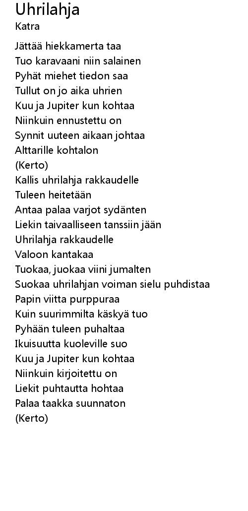 | Tullut on jo aika uhrien | |