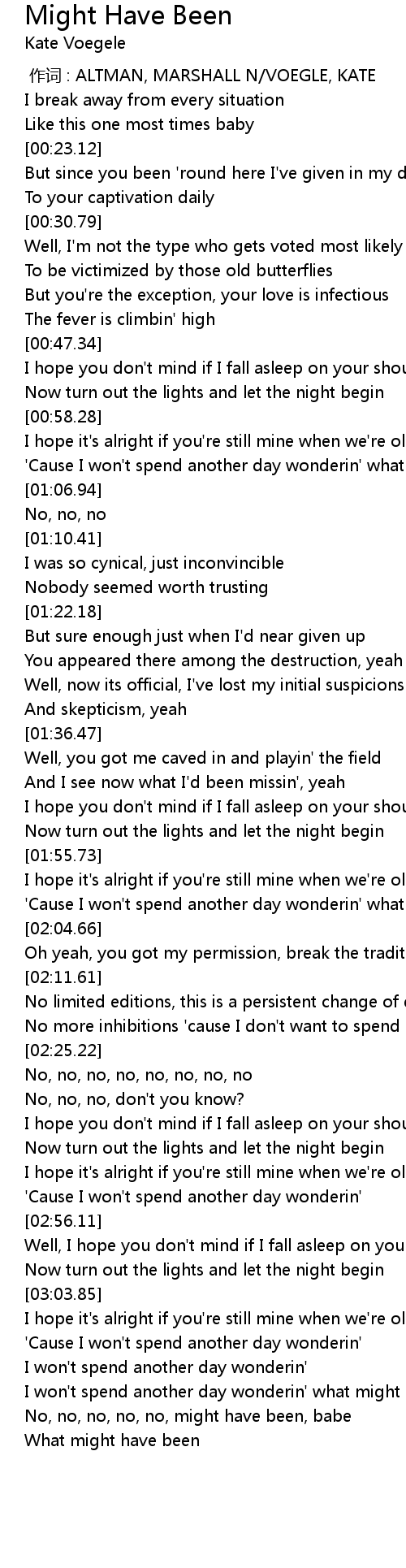 | [03:22.49] | No, no, no, no, no, might have been, babe |